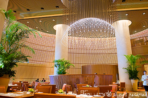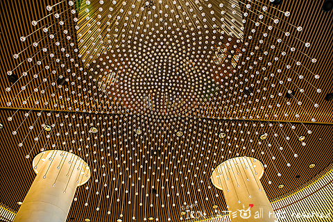 而大廳的富麗堂皇與令人聚焦的獨特竹編大型裝置藝術還有宛如光點瀑布的燈光
