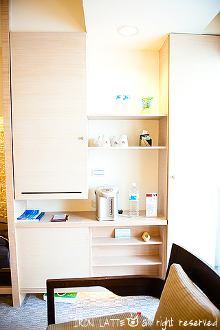 桌椅的正對面則是簡單的mini bar還有衣櫥保險箱等等